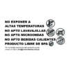 ATENCION: NO EXPONER A ALTAS TEMPERATURAS / NO APTO LAVAVAJILLAS / NO APTO MICROONDAS / NO APTO BEBIDAS CALIENTES / PRODUCTO LIBRE DE BPA