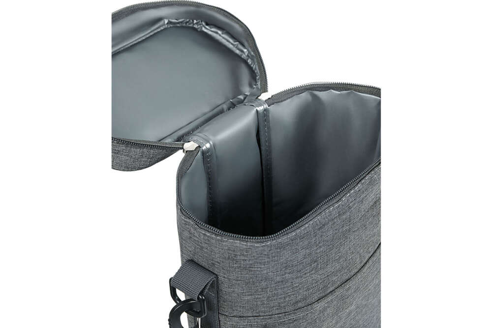 Matera realizada en su exterior en Polycanvas. En su interior posee PEVA y PE Foam por lo que cumple además la función de COOLER. Apertura y carga superior. Bolsillo frontal. Agarre para hombro. Medidas: 37 x 25 x 12 cm. Capacidad 10 Lts. Tahg.